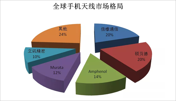 我國(guó)企業(yè)在終端天線市場(chǎng)的市場(chǎng)份額占比相比射頻器件境況要好,信維通信、碩貝德、立訊精密均占據(jù)一定比例的市場(chǎng)份額。