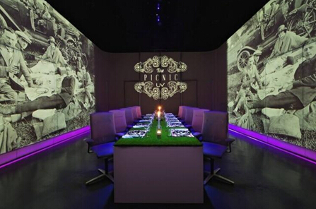 在上海Ultraiviolet就餐能讓你的所有感觀獲得滿足。他們的10人餐室當中由顯示屏和揚聲器所圍繞,可在顧客享受22道先鋒菜品時提供視覺和聽覺的體驗。除了炫目的視覺效果之外,這家餐廳的評價也很高,且僅接受在線預約。