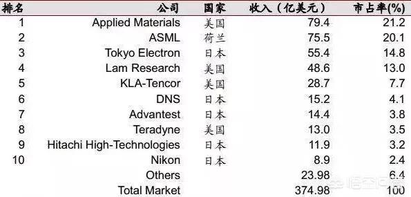 這里面美國、日本占據(jù)了絕對的優(yōu)勢,綜合來看,在整個(gè)半導(dǎo)體行業(yè),最厲害的還是美國和日本,因?yàn)榘雽?dǎo)體設(shè)備實(shí)在是比半導(dǎo)體制造還要復(fù)雜難攻的技術(shù)。