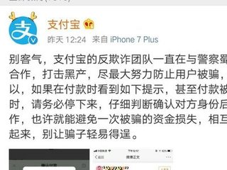 隨后,支付寶官方進(jìn)行回應(yīng)稱,“支付寶的反欺詐團(tuán)隊一直在與警察蜀黍們合作,打擊黑產(chǎn),盡最大努力防止用戶被騙,所以,如果在付款時看到如下提示,甚至付款被中斷時,請務(wù)必停下來,仔細(xì)判斷確認(rèn)對方身份后再操作。”