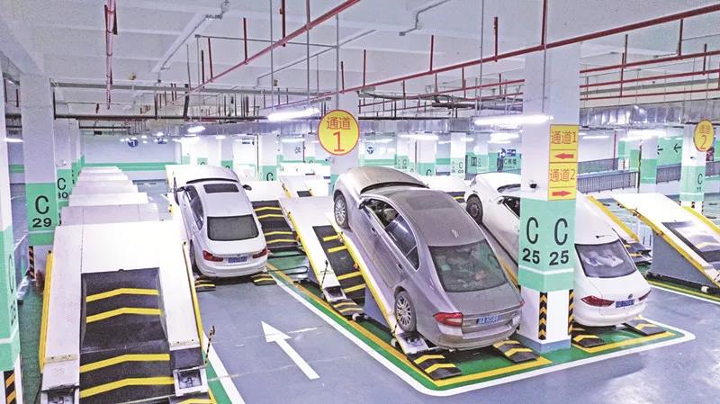 這是我國(guó)首個(gè)“平面斜置式”智能停車庫(kù)
