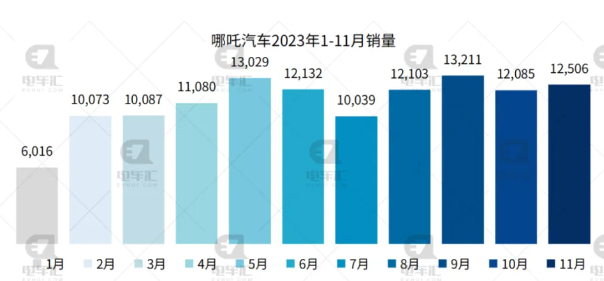 哪吒汽車11月交付新車12,506輛,同比下滑17%,環(huán)比增長3%。截止11月末,哪吒汽車今年累計交付新車122,361輛,累計銷量同比下滑15%。